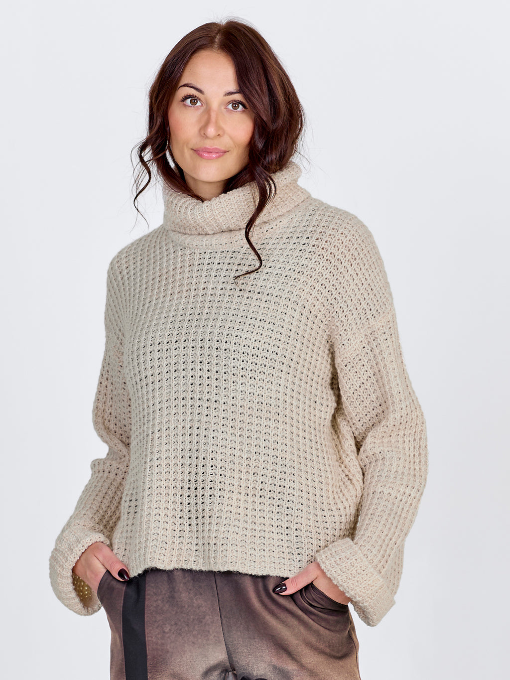 Deze trui straalt een ontspannen elegantie uit met zijn col en zachte structuur. Het eenvoudige ontwerp maakt het gemakkelijk te stylen, en de rustige uitstraling voegt een moeiteloos en persoonlijk tintje toe. De col geeft zowel warmte als karakter – perfect voor koele dagen waar comfort en stijl hand in hand gaan.