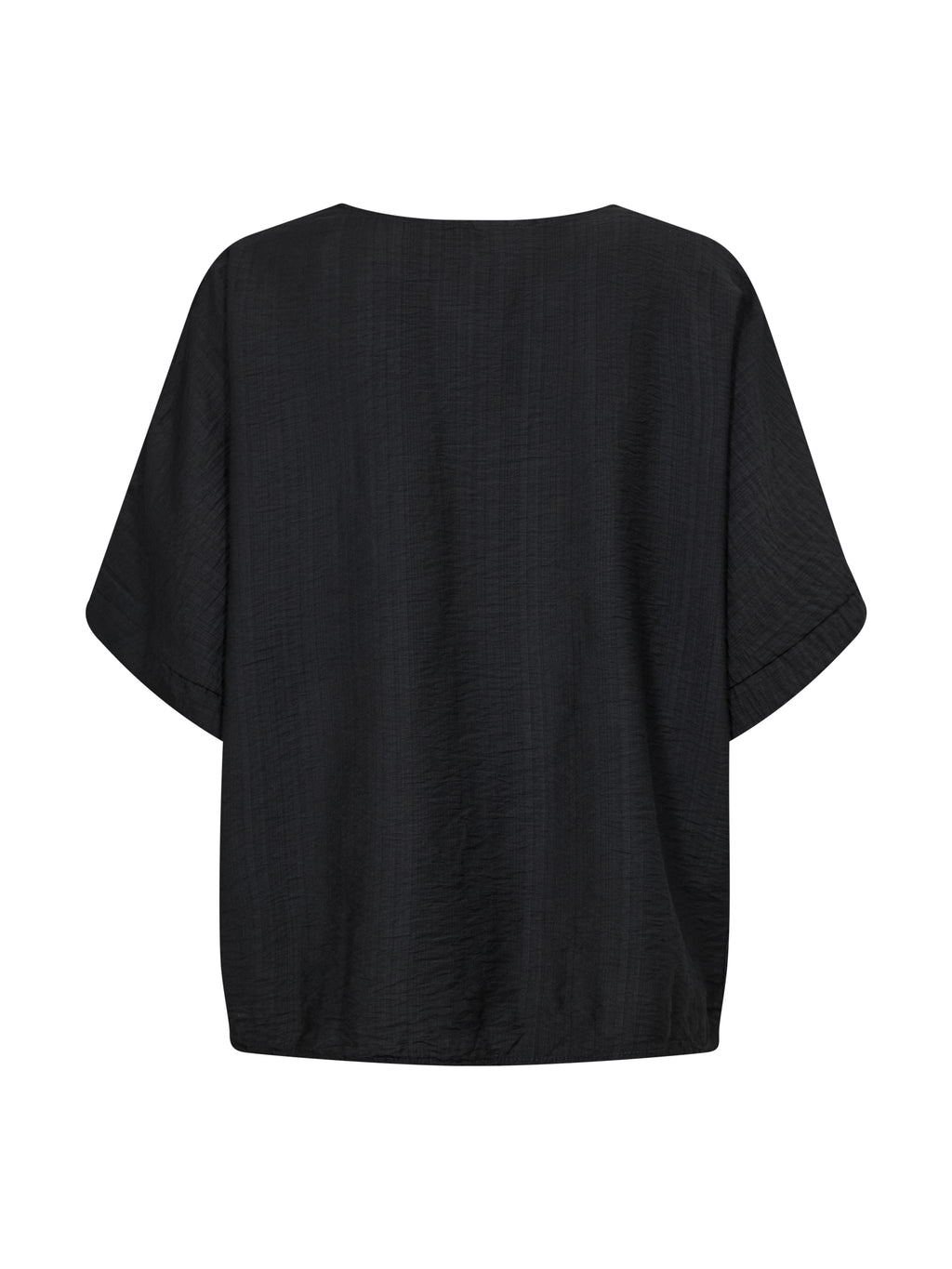 Deze luchtige blouse combineert comfort en eenvoud met zijn licht gestructureerde materiaal en relaxte pasvorm. Het heeft korte, loszittende mouwen en een V-halslijn met een decoratieve plooi aan de voorkant, wat een zacht middelpunt aan het ontwerp toevoegt. De wijde mouwboord geeft de blouse een subtiele lift en maakt de relaxte look compleet.
