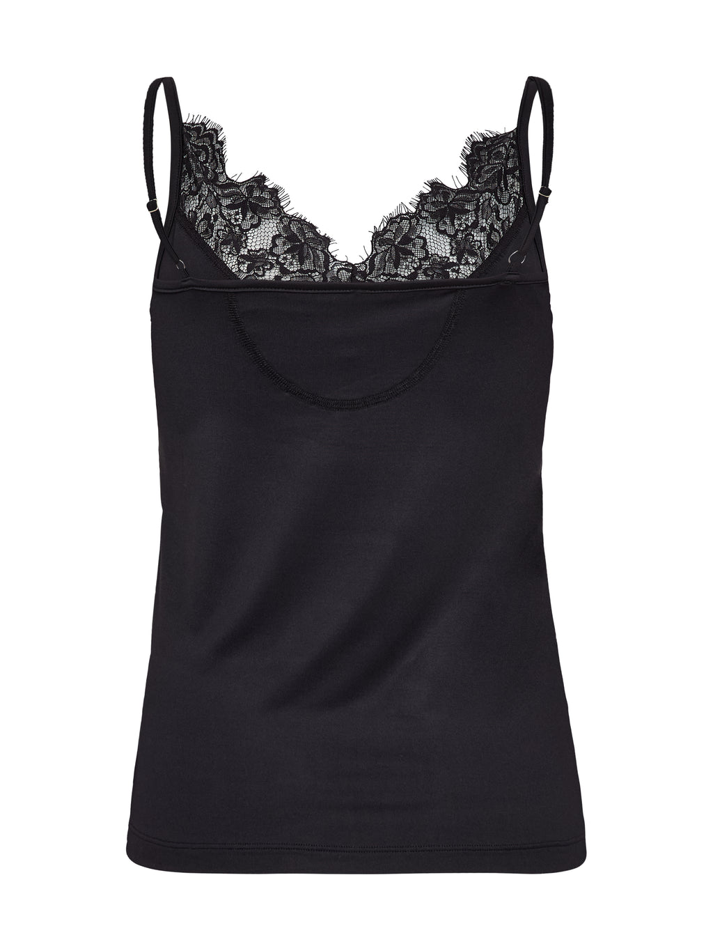Deze prachtige top is gemaakt van een ongelooflijk zachte, gladde en rekbare kwaliteit. De top heeft dunne, verstelbare bandjes en een prachtige kanten afwerking bij de halslijn. Het kan op zichzelf gedragen worden of onder een shirt voor een delicaat kantdetail. Voor een stijlvolle look, overweeg om deze top te combineren met de HALINA blouse en HOLLY broek.