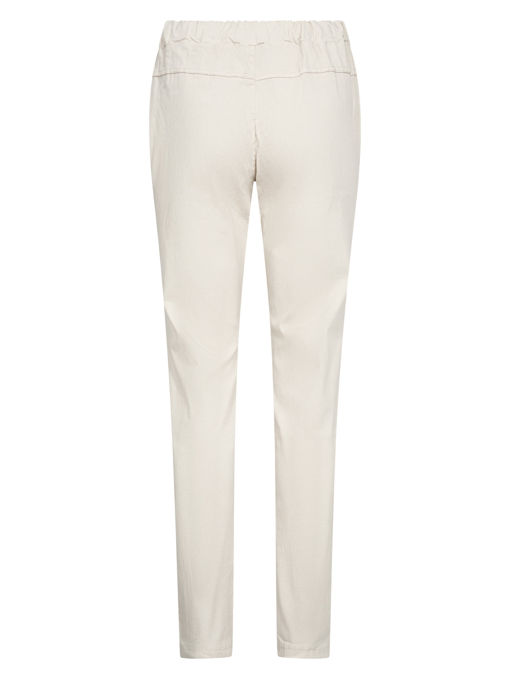 Deze broek is gemaakt van een zacht viscose stretch materiaal, dat zowel bewegingsvrijheid als comfort biedt gedurende de hele dag. De taille heeft elastiek en een verstelbaar koord, wat zorgt voor een flexibele pasvorm, terwijl de rechte pijpen en relaxte pasvorm een moderne en veelzijdige uitstraling creëren. Een paar broeken die gemakkelijk gestyled kunnen worden voor zowel dagelijks gebruik als chiquere gelegenheden, afhankelijk van hoe je ze combineert.