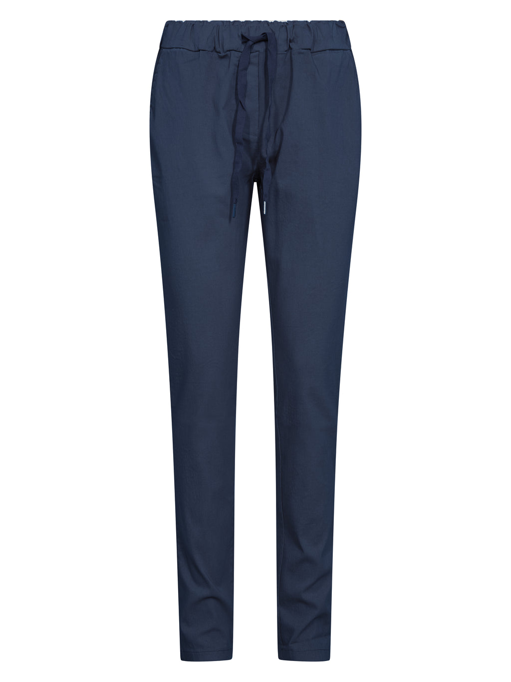 Deze broek is gemaakt van een zacht viscose stretch materiaal, dat zowel bewegingsvrijheid als comfort biedt gedurende de hele dag. De taille heeft elastiek en een verstelbaar koord, wat zorgt voor een flexibele pasvorm, terwijl de rechte pijpen en relaxte pasvorm een moderne en veelzijdige uitstraling creëren. Een paar broeken die gemakkelijk gestyled kunnen worden voor zowel dagelijks gebruik als chiquere gelegenheden, afhankelijk van hoe je ze combineert.