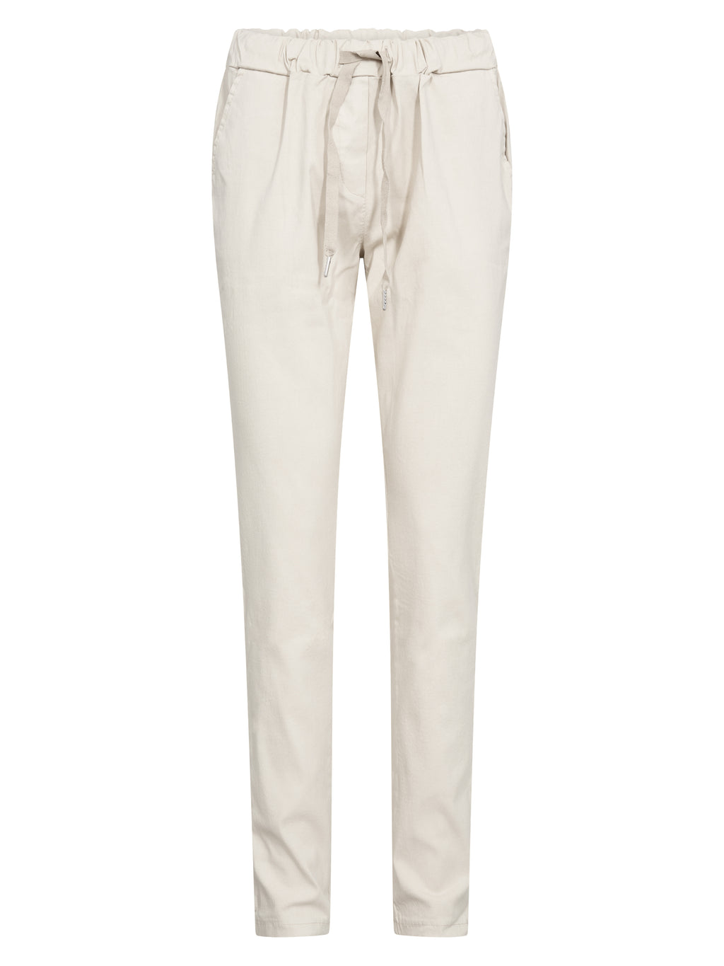 Deze broek is gemaakt van een zacht viscose stretch materiaal, dat zowel bewegingsvrijheid als comfort biedt gedurende de hele dag. De taille heeft elastiek en een verstelbaar koord, wat zorgt voor een flexibele pasvorm, terwijl de rechte pijpen en relaxte pasvorm een moderne en veelzijdige uitstraling creëren. Een paar broeken die gemakkelijk gestyled kunnen worden voor zowel dagelijks gebruik als chiquere gelegenheden, afhankelijk van hoe je ze combineert.