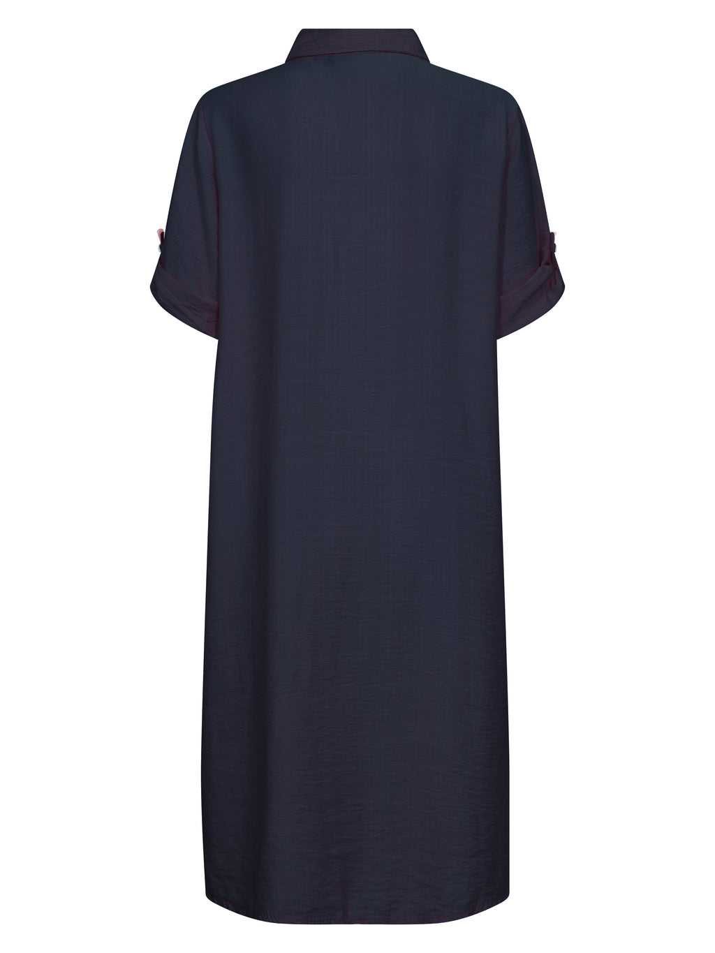 Deze hemdjurk combineert eenvoud en functionaliteit in een losse en comfortabele snit. Het heeft een volledige sluiting met knopen aan de voorkant, een klassieke hemdkraag, en manchetmouwen die verstelbaar zijn met knoopriemen. De jurk heeft zijzakken, wat een praktisch element toevoegt, en de licht gestructureerde kwaliteit maakt de ontspannen uitstraling compleet.