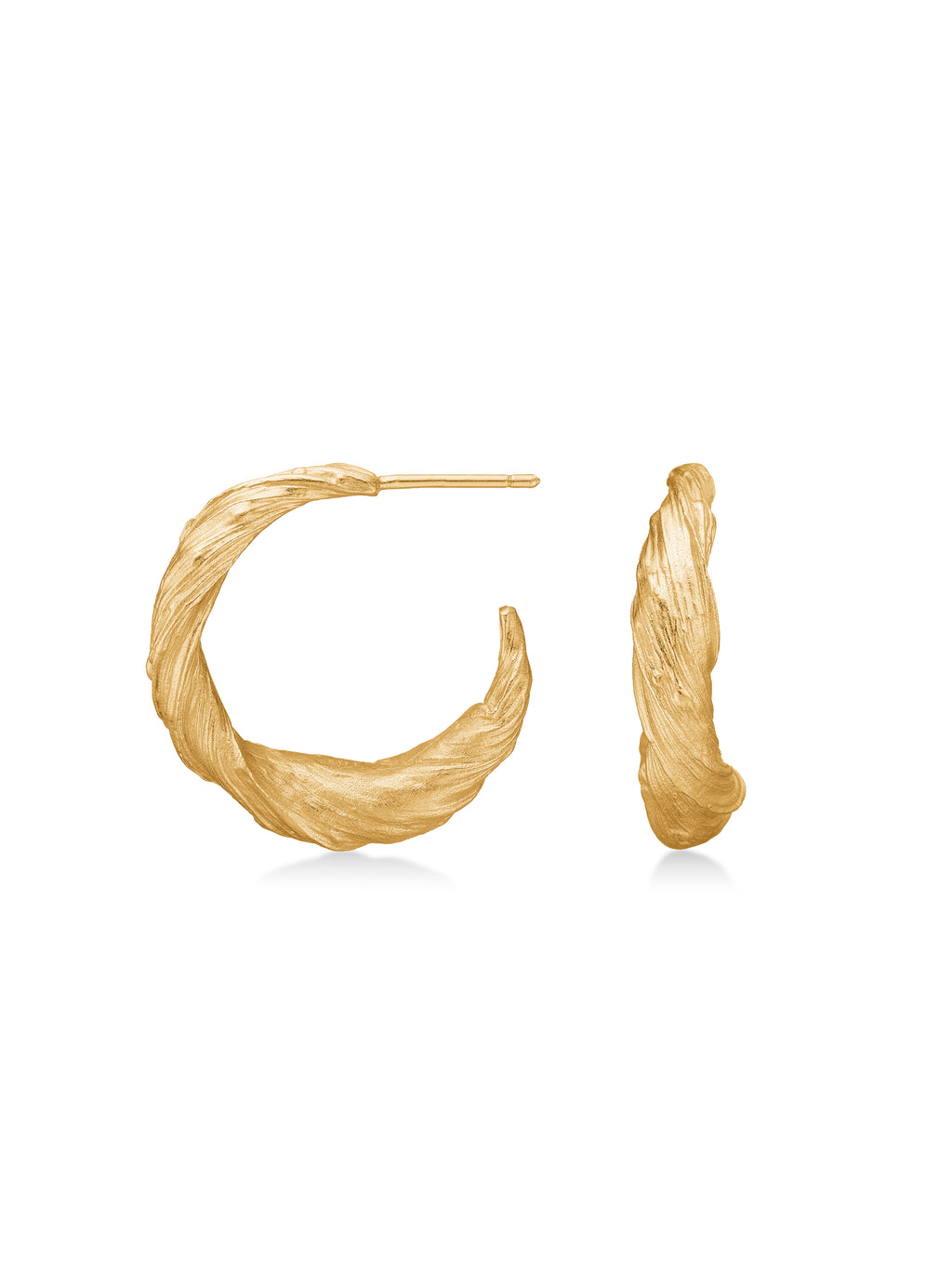 Deze hoops uit de HIKU-collectie hebben een open en organische vorm, waarvan het oppervlak duidelijk sporen draagt van het werk in was. Kleine krassen en bewegingen geven het sieraad diepte en karakter - als een stille afdruk van de hand erachter.