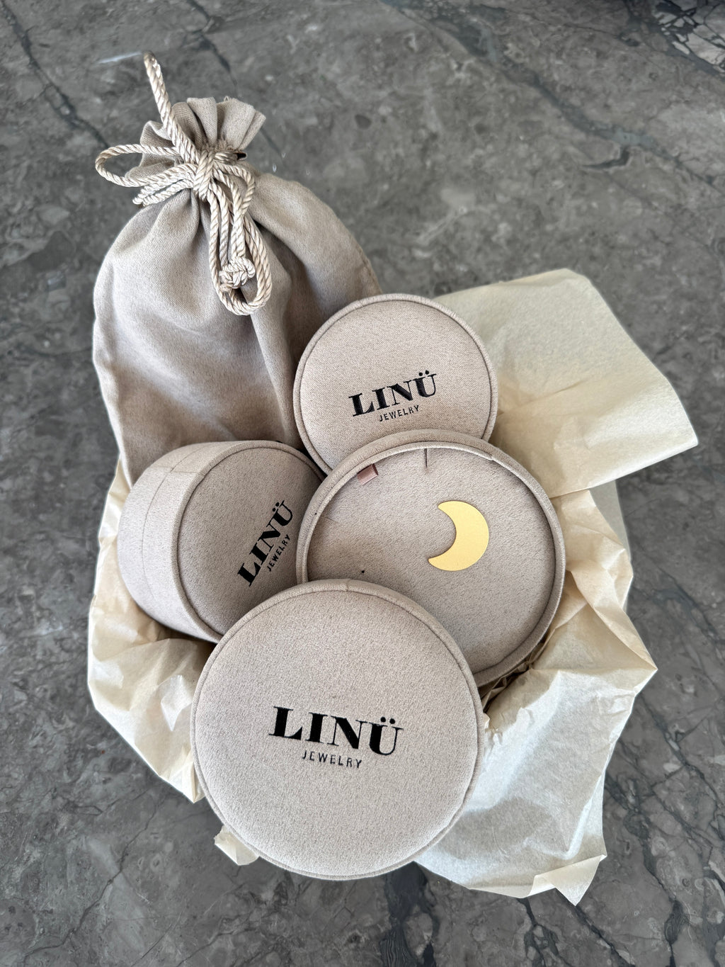 Maak december wat meer magisch met LINÜ's exclusieve adventskalender. In de vier elegante dozen zitten zorgvuldig geselecteerde sieraden van zowel Space Travel als Cave Collection - één ring, twee oorbellen en een ketting. Je kunt kiezen tussen de kalender in goud of zilver, afhankelijk van wat het beste bij jouw stijl past.