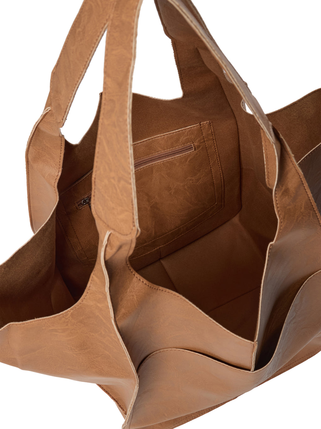 Eenvoudig en ruim - deze tas is een veelzijdige keuze voor zowel dagelijks gebruik als voor het weekend. Het is gemaakt van een zacht en flexibel materiaal dat een ontspannen uitstraling geeft, terwijl de brede banden het comfortabel maken om over de schouder te dragen. Het eenvoudige ontwerp van de tas met zichtbare naden en geen sluiting maakt het gemakkelijk te gebruiken en snel in te pakken.