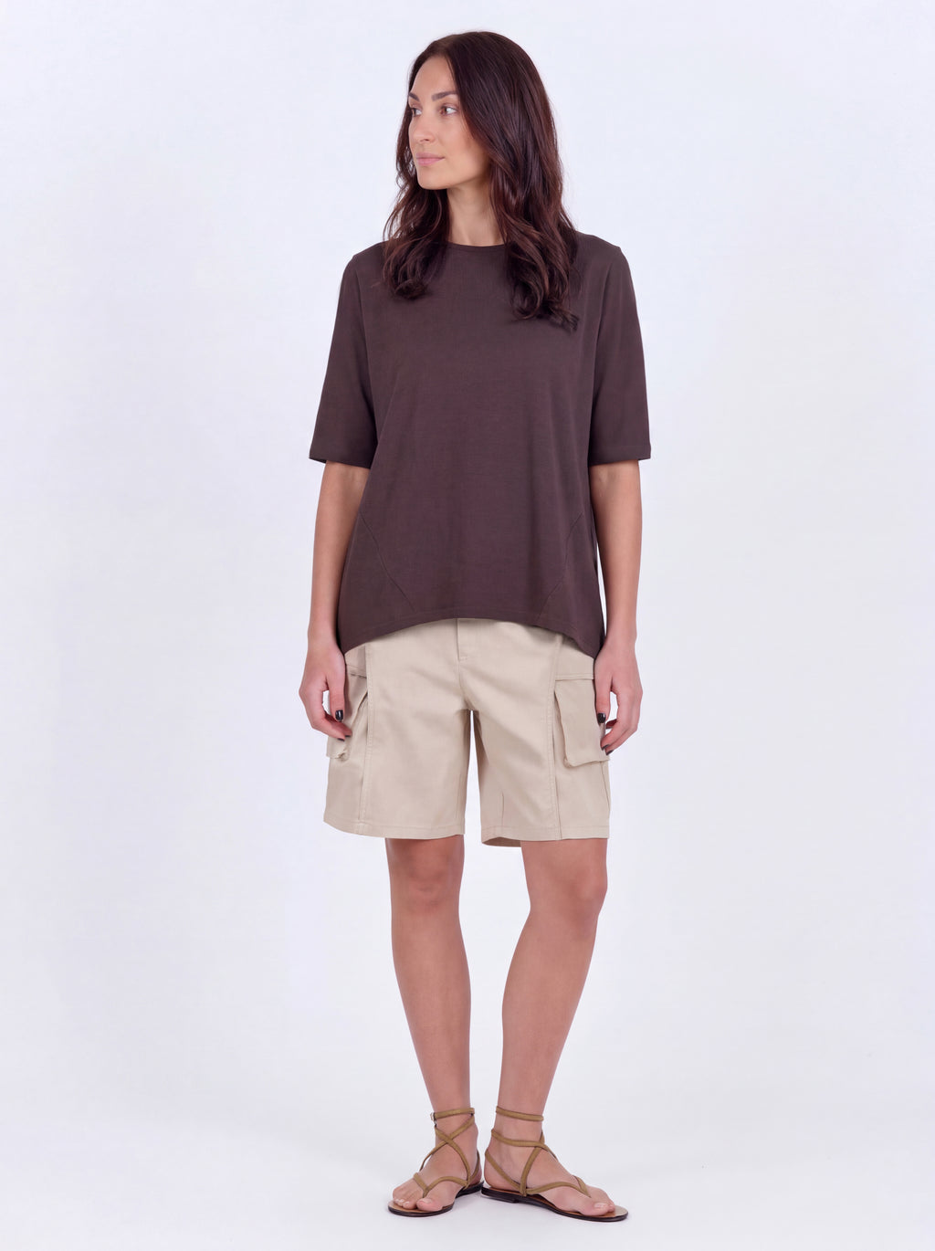 Fijn t-shirt gemaakt van een zachte en comfortabele katoen kwaliteit. Het t-shirt is ontworpen met een oversized pasvorm en is aan de achterkant iets langer dan aan de voorkant, wat zorgt voor een comfortabele pasvorm die perfect is voor die warme dagen. Daarnaast kan het t-shirt 3/4 mouwen worden opgerold om twee verschillende looks te creëren. Style het T-shirt met een cargobroek om een coole en casual alledaagse outfit te creëren.