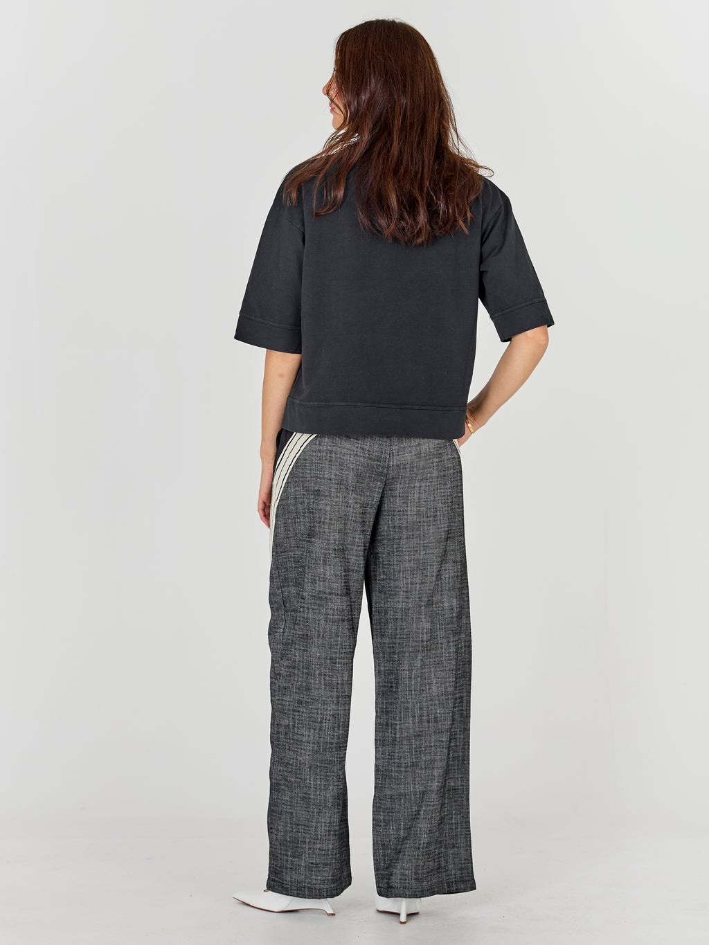 Deze boxy t-shirt is gemaakt van een zacht sweatmateriaal met een lichte structuur, die een ontspannen maar stijlvolle uitstraling geeft. Het heeft een losse pasvorm, droge schouders en wijde mouwen - perfect voor zowel relaxte dagen als coole dagelijkse looks.