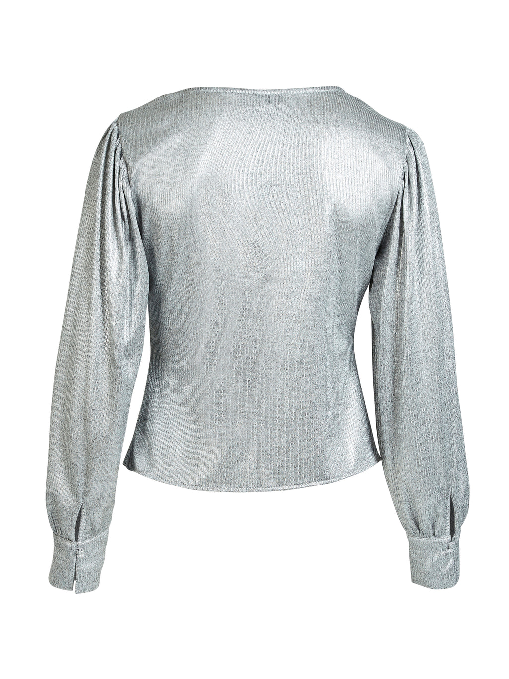 Val op met deze opvallende wikkelblouse met een subtiele metallic glans. Het heeft een flatterende V-halslijn en een elegante strikceintuur in de taille, die de figuur accentueert. De lange mouwen zijn afgewerkt met manchetten voor een klassieke uitstraling, terwijl de glanzende textuur van de stof zorgt voor een moderne twist.
