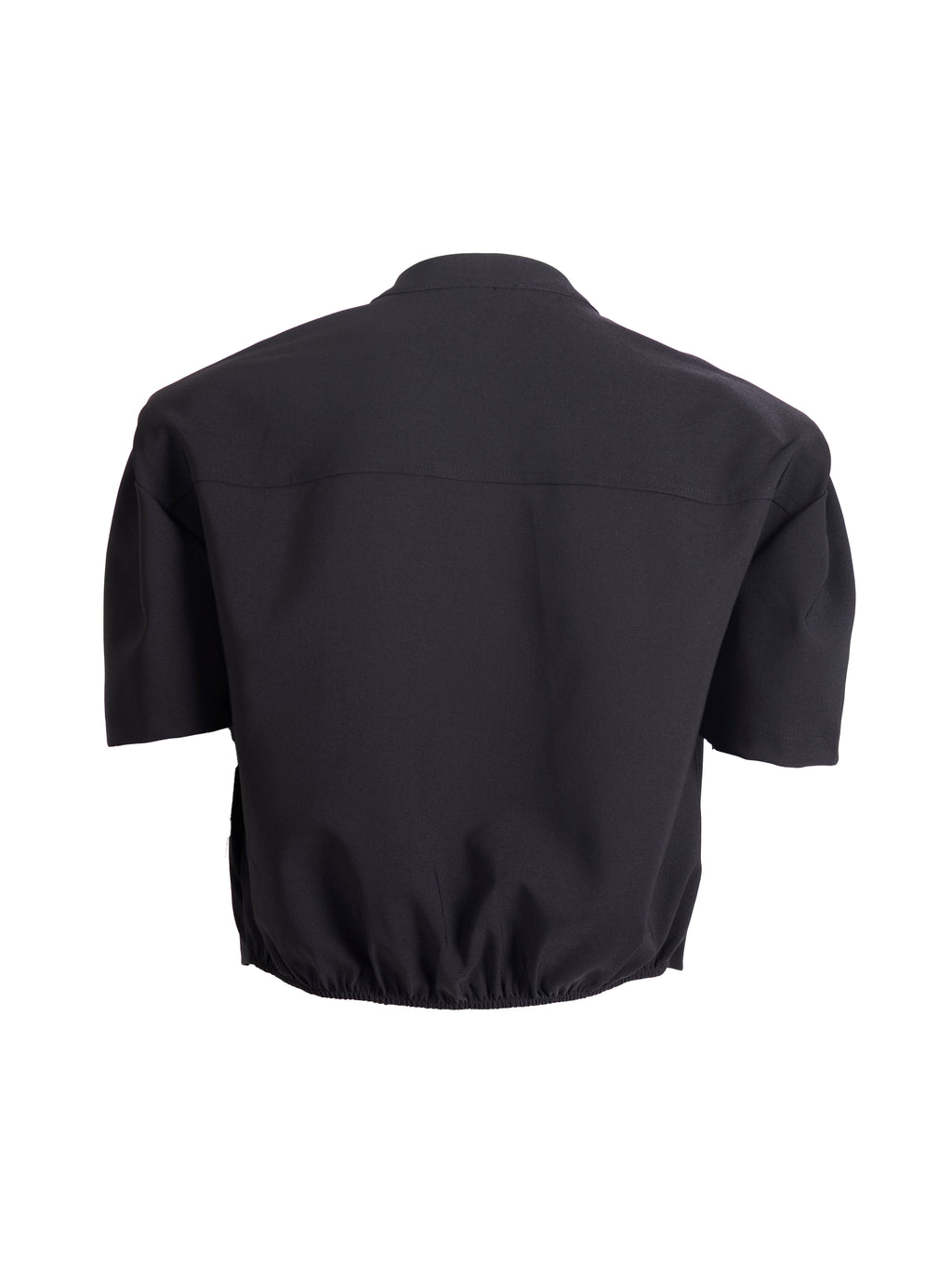Geef je outfit een moderne twist met deze korte bolero-jas die structuur en eenvoud combineert. De jas heeft korte, subtiel gedefinieerde mouwen en een volledige rits aan de voorkant, wat een coole en strakke uitstraling toevoegt. De elastische zoom onderaan zorgt voor een licht afgeronde pasvorm, waardoor hij zowel comfortabel als flatterend is.