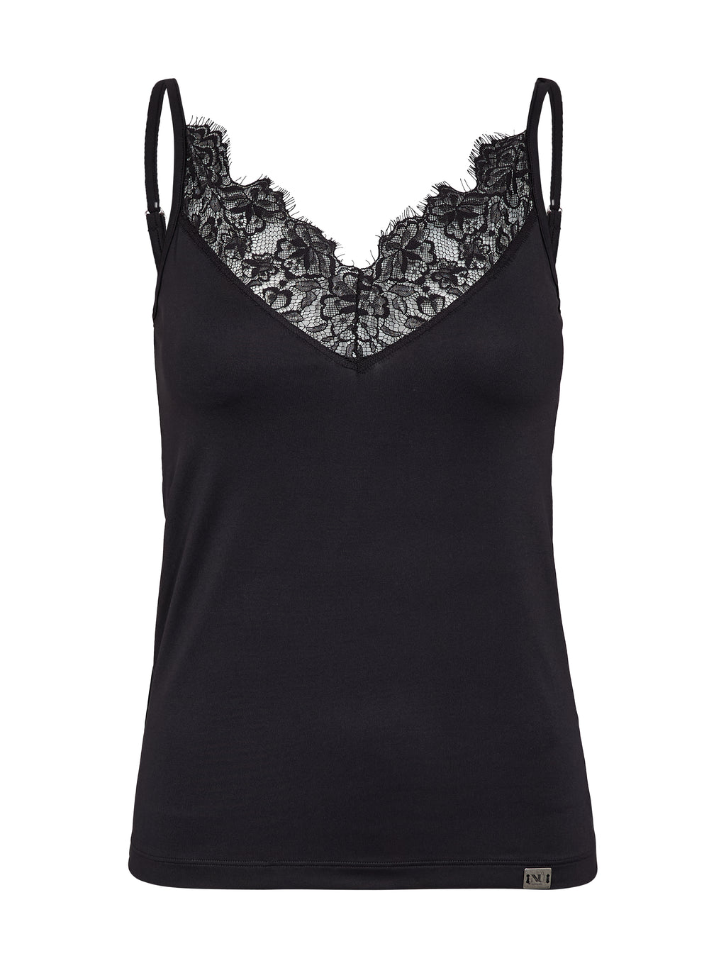 Deze prachtige top is gemaakt van een ongelooflijk zachte, gladde en rekbare kwaliteit. De top heeft dunne, verstelbare bandjes en een prachtige kanten afwerking bij de halslijn. Het kan op zichzelf gedragen worden of onder een shirt voor een delicaat kantdetail. Voor een stijlvolle look, overweeg om deze top te combineren met de HALINA blouse en HOLLY broek.