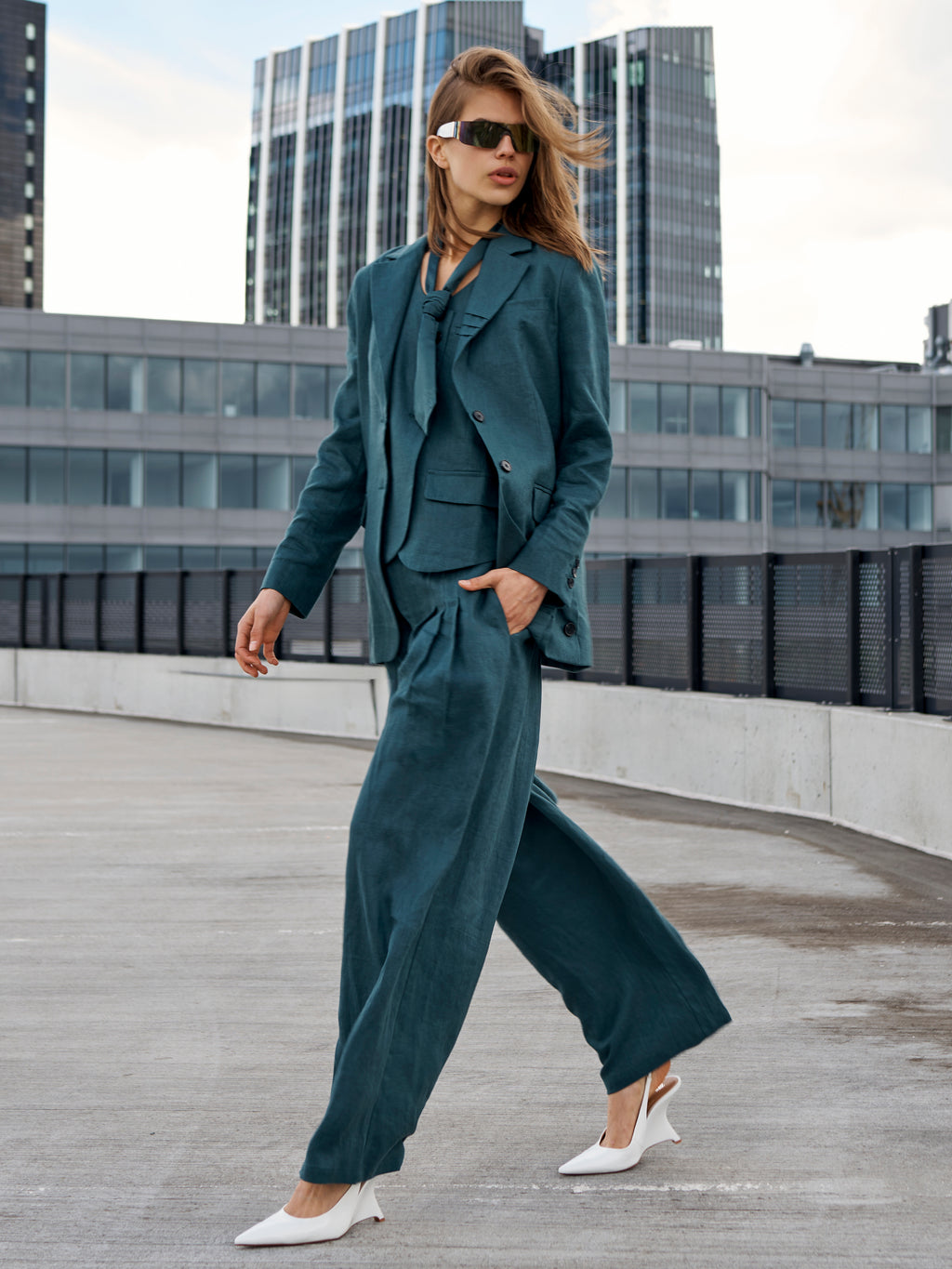 Style de blazer met de bijpassende broek of vest voor een complete set, of draag hem over een top of blouse voor een meer eenvoudige en bruikbare alledaagse look.