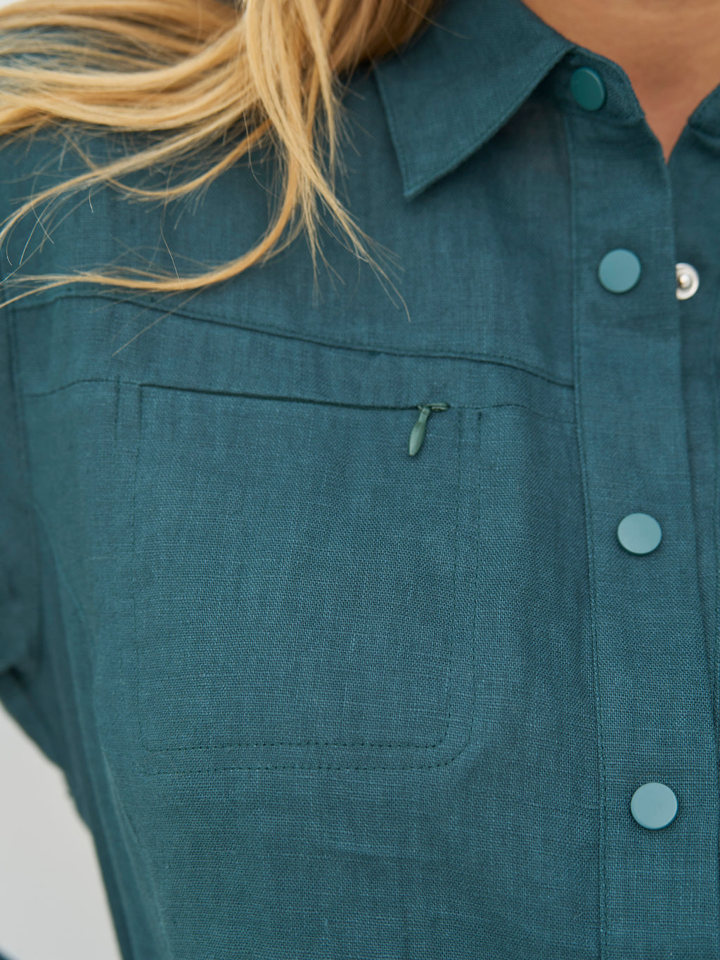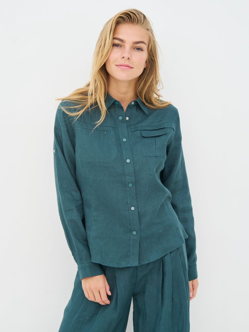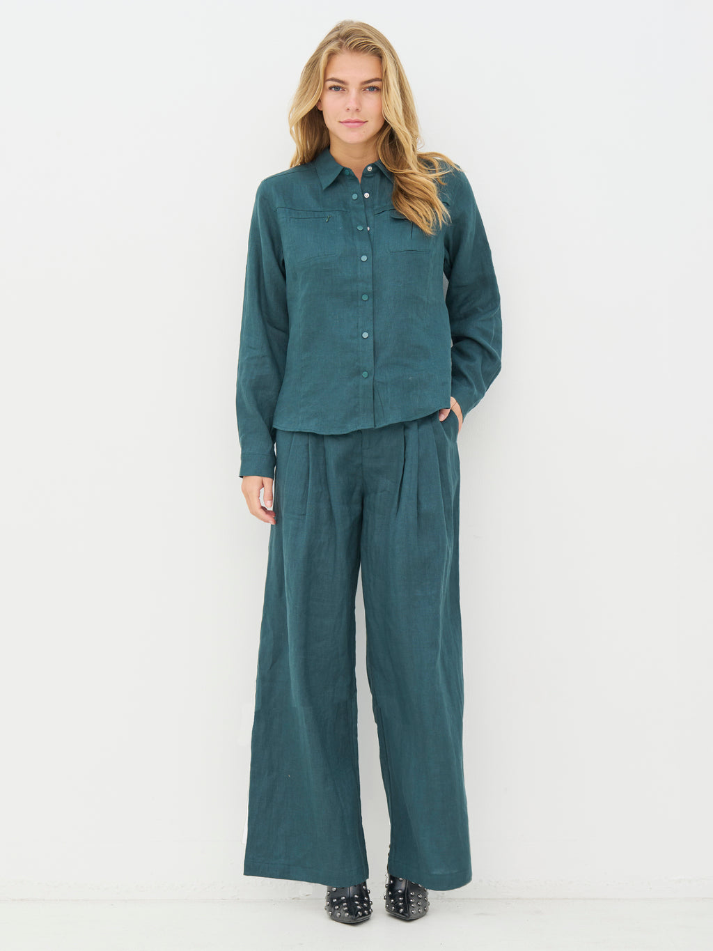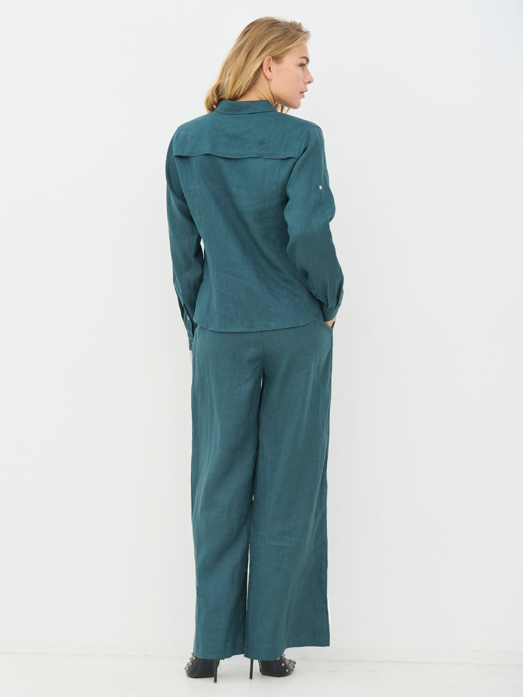 Dit overhemd heeft een eenvoudige en stijlvolle uitstraling met een klassieke kraag en doorknoopsluiting aan de voorkant. De borstzakken voegen een subtiel, functioneel element toe, terwijl de achterkant meer eenvoudig is en mooi langs de rug valt. De pasvorm is recht en comfortabel, waardoor het overhemd gemakkelijk zowel dicht als open te dragen is. Style het met bijpassende broek voor een complete look, of draag het met jeans voor alledaags gebruik.