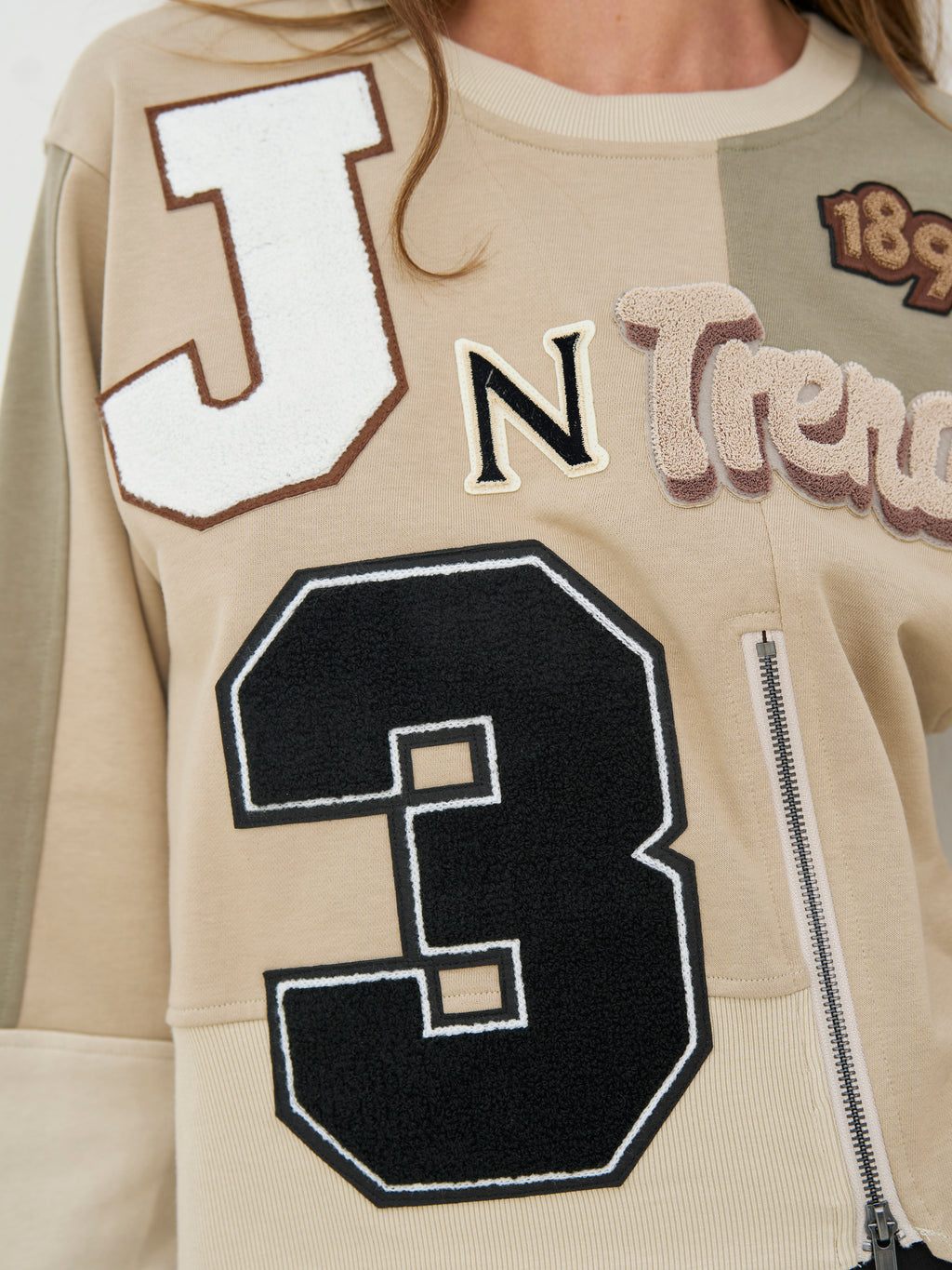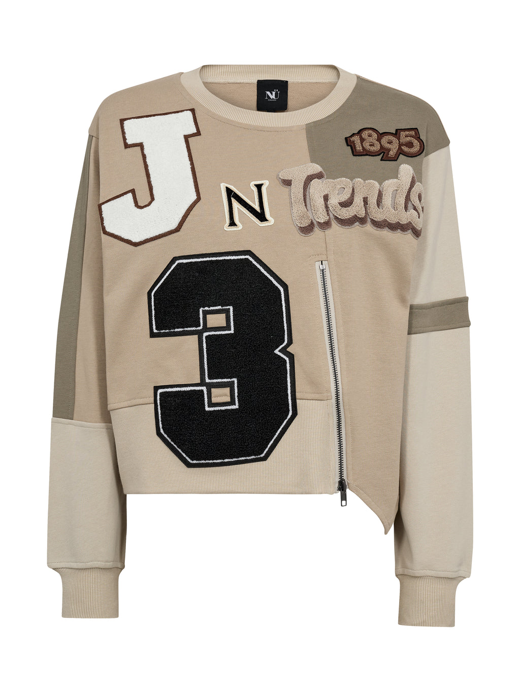 Deze trui heeft een sportief uiterlijk met grote, getextureerde details aan de voorkant en een schuine rits die het ontwerp een opvallende draai geeft. De achterkant is eenvoudiger en zorgt voor een mooie balans tussen opvallend en eenvoudig. De relaxte pasvorm maakt het gemakkelijk om te dragen voor zowel alledaagse als rustige momenten. Combineer het met jeans of losse broeken voor een moeiteloze en doordachte outfit.
