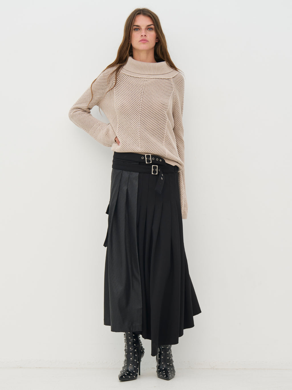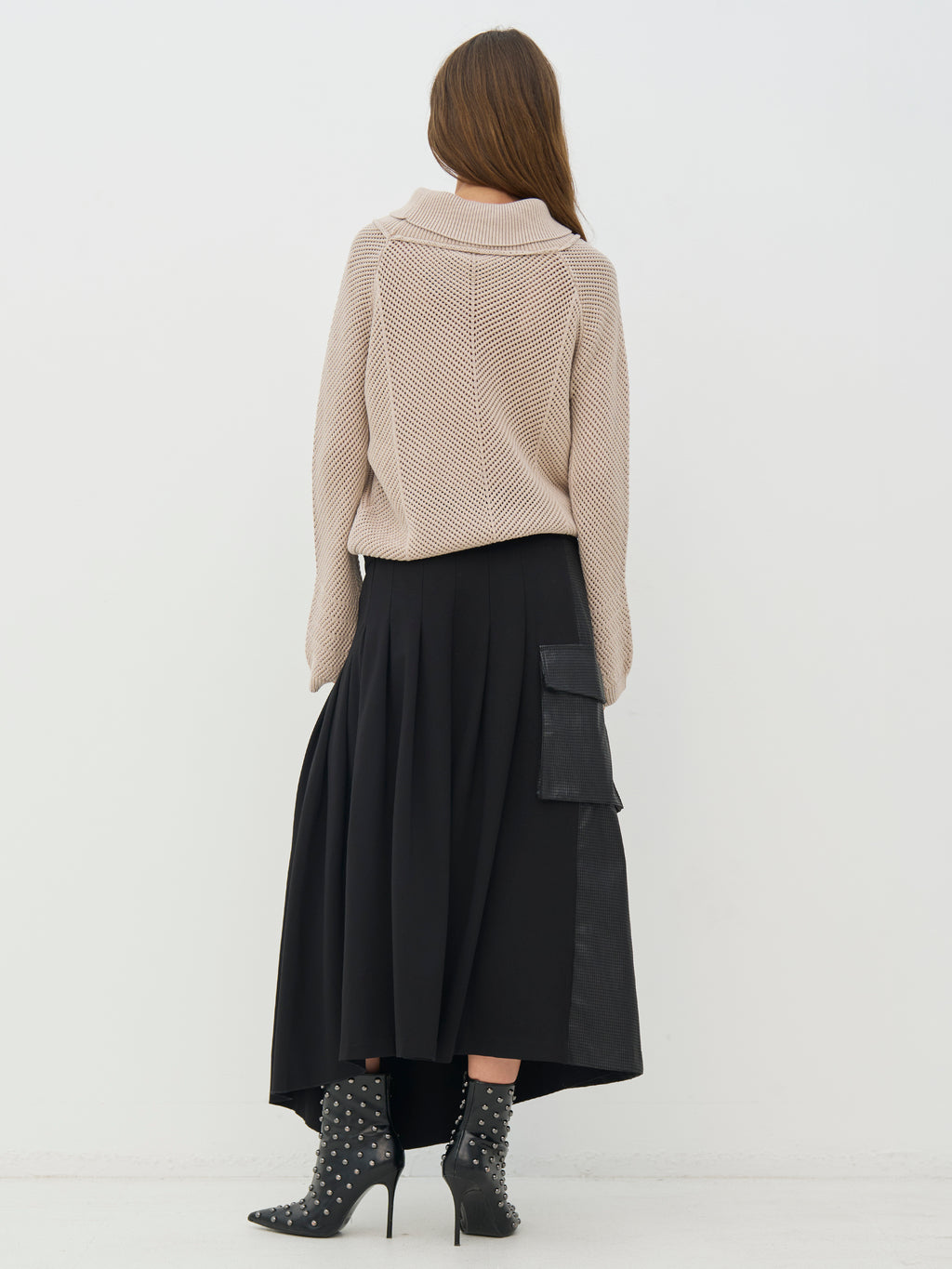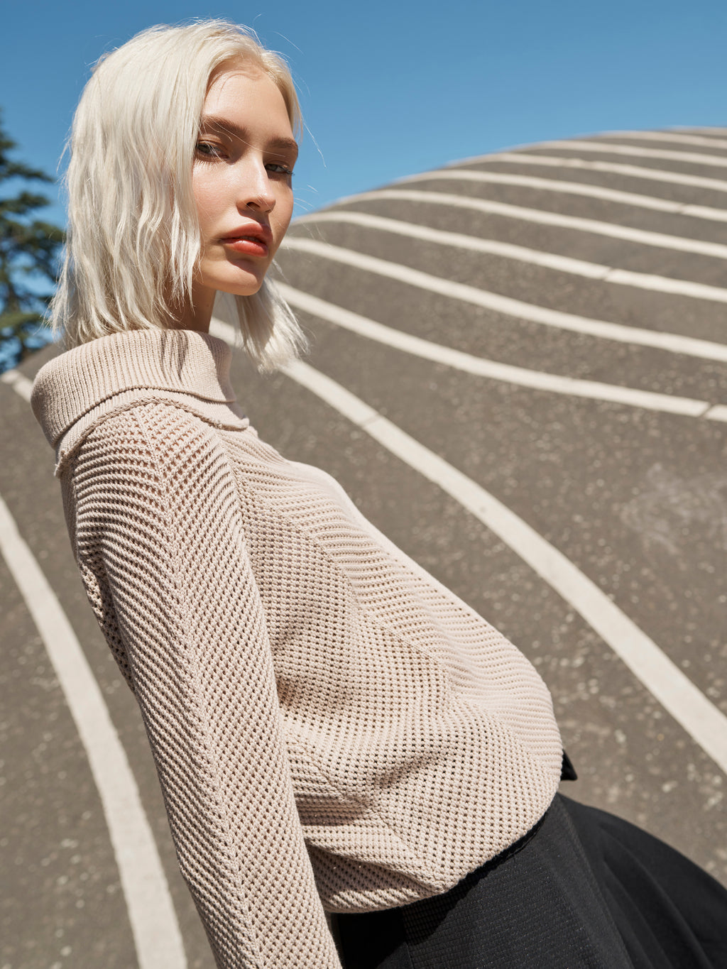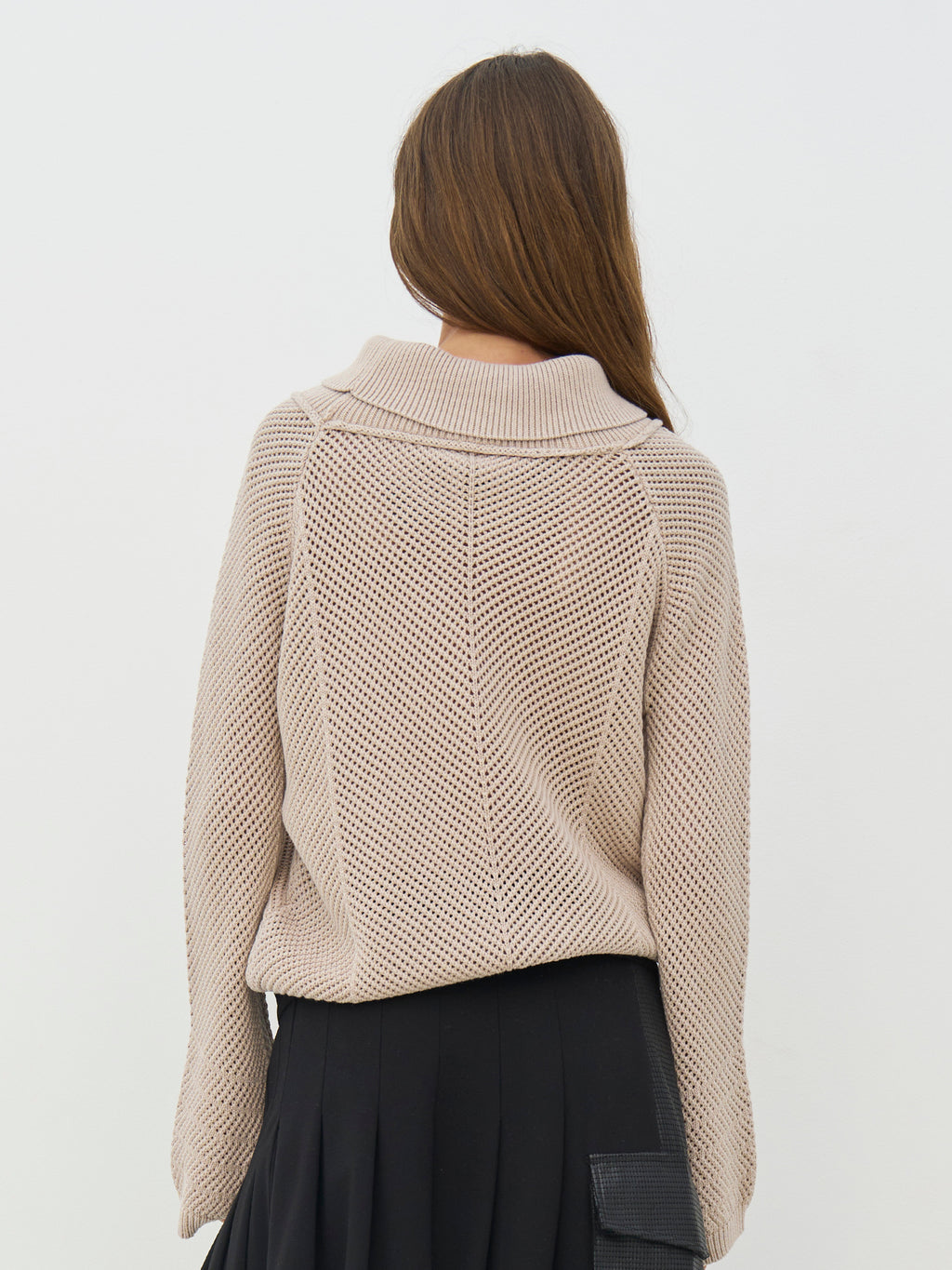 Deze gebreide trui heeft een klassieke en ontspannen uitstraling met lange mouwen en een zachte, gerolde kraag die zorgt voor een comfortabele pasvorm. Het breisel heeft een subtiel patroon dat structuur aan het ontwerp geeft, terwijl zowel de voor- als achterkant eenvoudig en uniform blijven. De pasvorm maakt het gemakkelijk om elke dag te dragen. Combineer de trui met een rok voor een meer vrouwelijke uitstraling, of met een broek voor een rustige en goed samengestelde look die zowel geschikt is voor werk als vrije tijd.