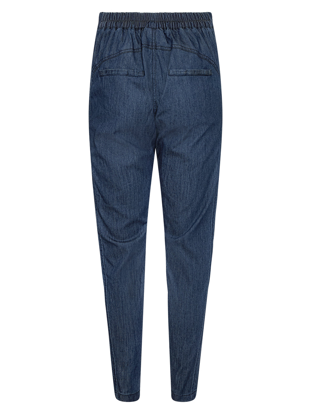 Deze spijkerbroek heeft een eenvoudige snit met smalle pijpen die zorgen voor een mooie en relaxte uitstraling. Aan de voorkant bevindt zich een schuine detail met knopen in de taille, wat de broek een beetje extra pit geeft, terwijl de achterkant klassiek en rustig is. De broek is gemakkelijk te dragen in het dagelijks leven en kan gestyled worden met een eenvoudige top, blouse of trui, afhankelijk van welke look je wilt.