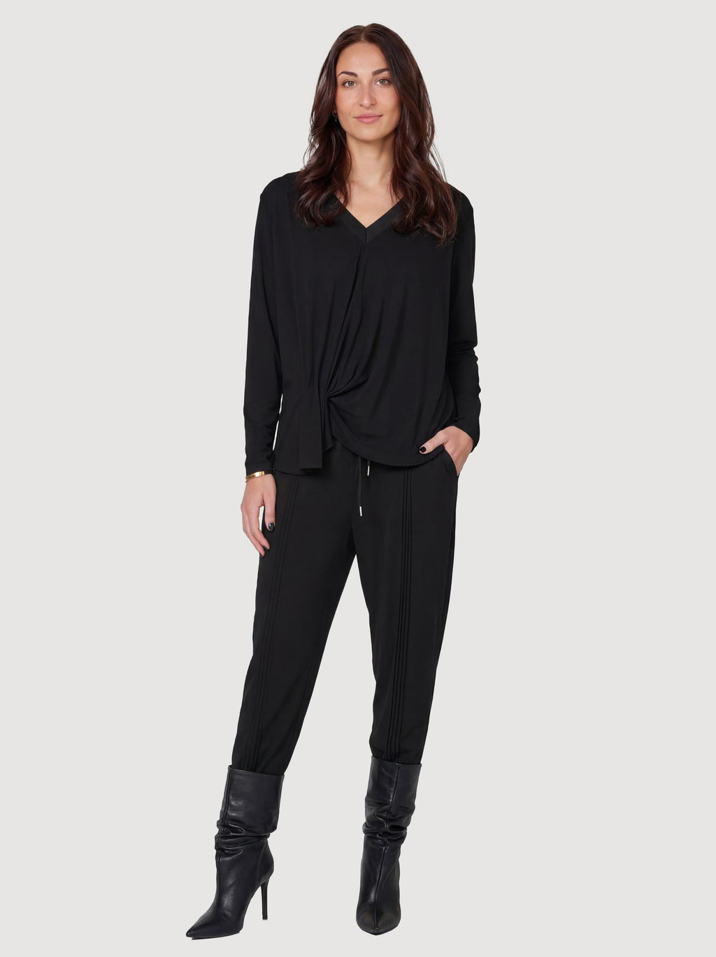- Elastiek en trekkoord in de taille.